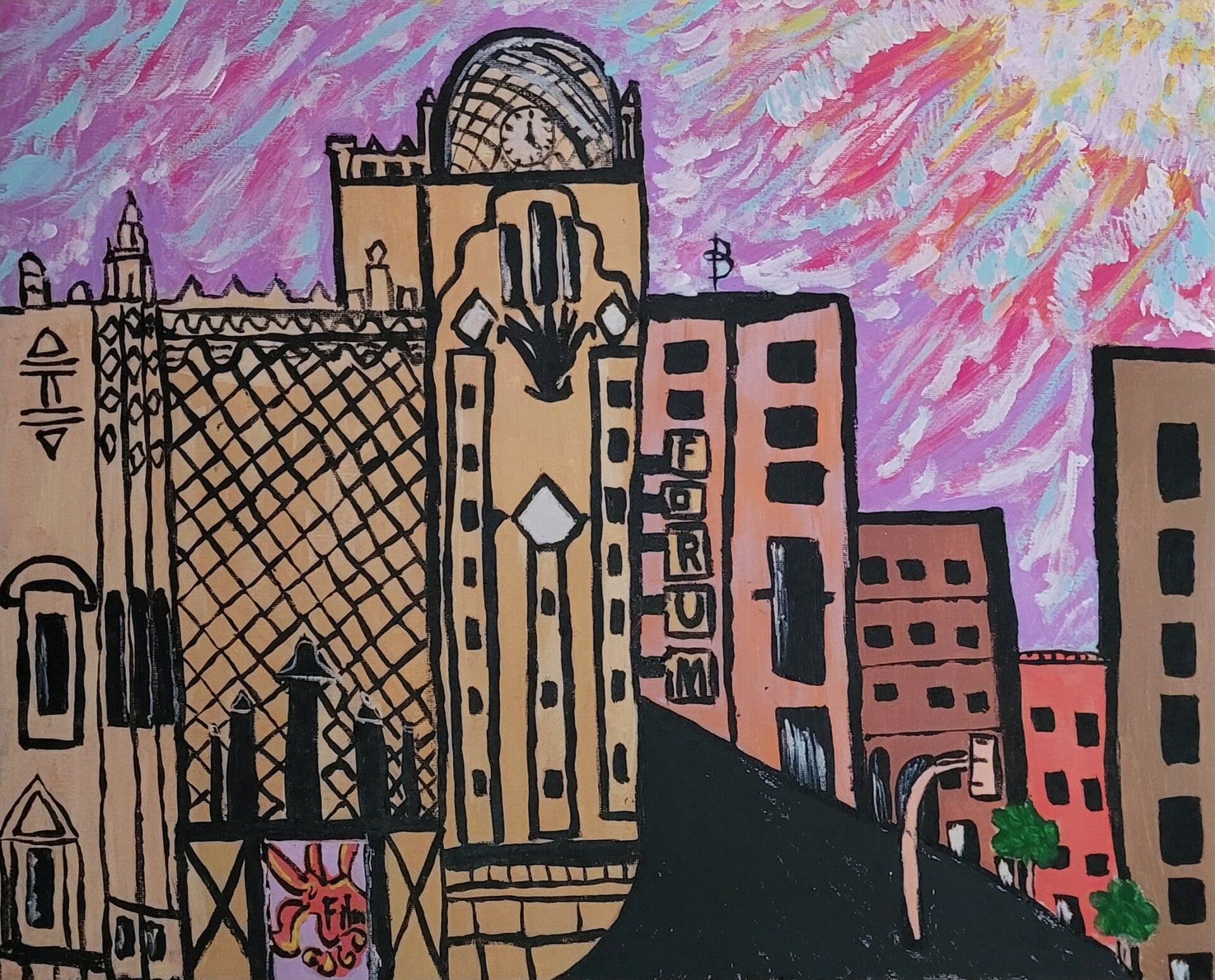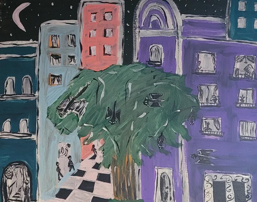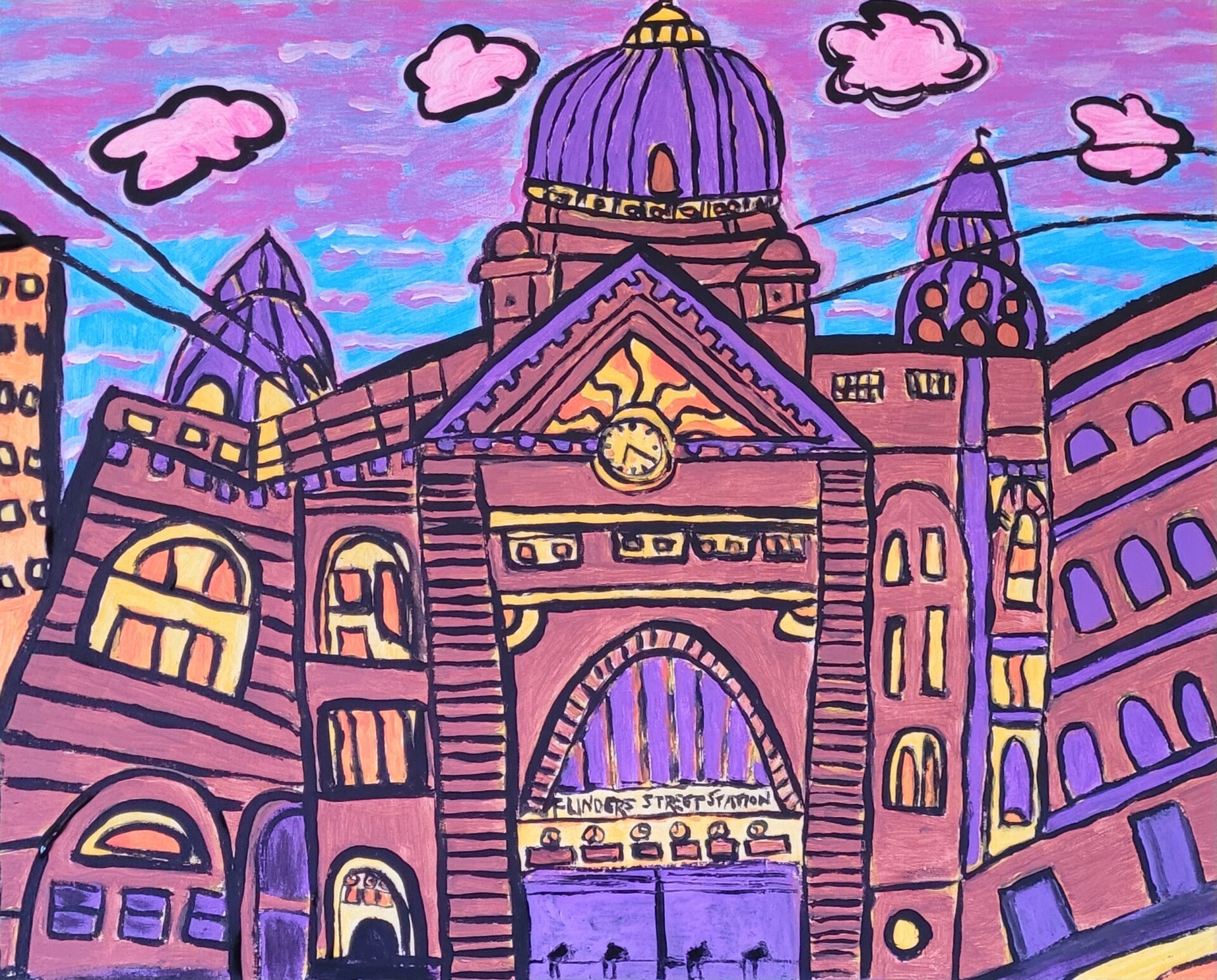 I am always enthusiastic when it comes to appreciating all styles of Art, I particularly love expressionism, surrealism, folk and outsider arts from the past, present and into the future. I am forever a student in Arts, and life, I am also a Musician, Singer/Songwriter/Recording Independent Artist, of the past 30 years, Painting Melbourne Buildings has come much later, when turning age 50, before 2025 when I began painting Melbourne, I would design my own Song and Album Covers for prints onto CDs and Shirts, from drawings and digital art apps, such as procreate on my iPad. These designs with my music can be found at fionahoneyman.bandcamp.com if you are interested in taking a look!